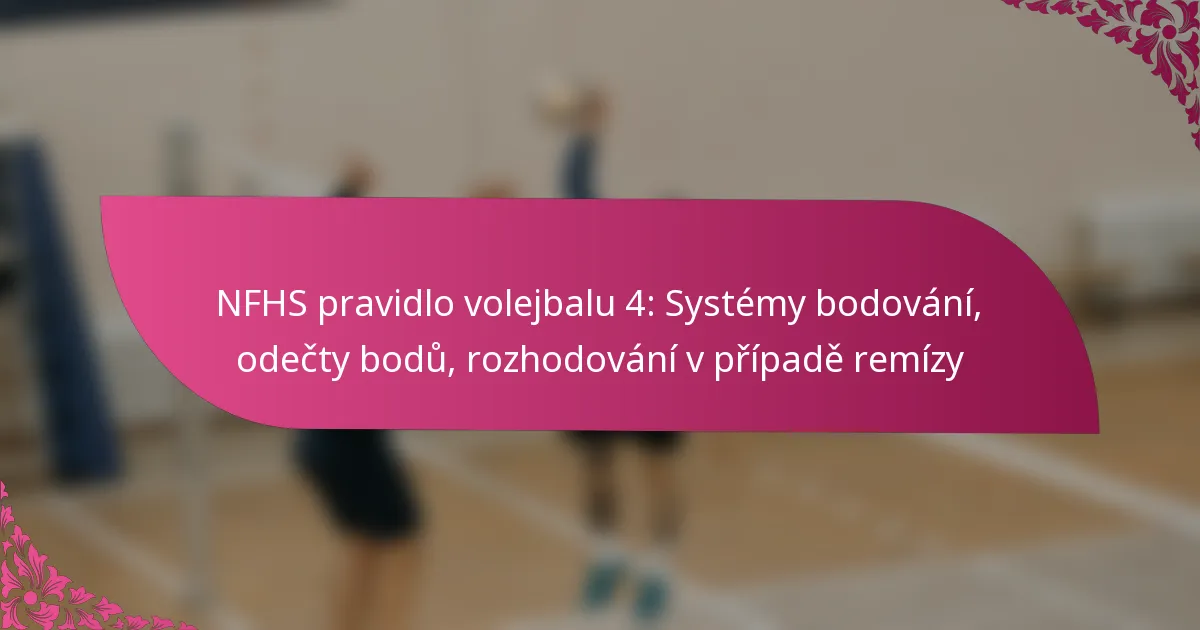 Pravidlo 4 NFHS pro volejbal vymezuje systémy bodování používané ve volejbale na středních školách, přičemž se primárně zaměřuje na rally bodování a tradiční metody. Pochopení těchto systémů je klíčové pro hráče, trenéry a rozhodčí, protože přímo ovlivňují výsledky zápasů a strategie.